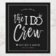 Lassen Sie die phantastischen Leute in Ihrer Hochzeitsfeier mit diesen speziellen, schwarzen Weinetiketten besonders willkommen sein. Das Design enthält die Worte "Die I do Crew" in einem eleganten und dennoch modernen Schriftstil. Das Wort "do" enthält einen glänzenden Diamantenring anstelle des Buchstabens "O", um die Heirat der Braut und des Bräutigams zu bezeichnen. Darunter befindet sich ein optionaler Platz für den Namen des Ehepaares oder Braut und Bräutigam.