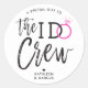 Lassen Sie die phantastischen Leute in Ihrer Hochzeitsfeier mit diesen individuell gestaltbaren Hochzeitsaufklebern besonders und geschätzt werden. Das Design enthält die Worte "Die I do Crew" in einem eleganten und dennoch modernen Schriftstil. Das Wort "do" enthält einen funkelnden rosa Diamantenring anstelle des Buchstabens "O", um die Heirat der Braut und des Bräutigams zu bezeichnen. Umgeben von diesem Design sind die Punkte für Ihre einzigartigen Informationen und Textdetails.