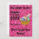 Ostereierjagd, Sonnenschein, Eier, Party, farbenfrohe, individuelle Einladung, Abendessen, Korb, Familie, Brötchen, Eierjagd, Funkeln Zeigen Sie Ihren Ostergeist mit dieser lustigen Geschenkeinladung, mit einem spielerischen Design eines Hasen mit einem Korb und dem Sprichwort, "Die Jagd ist auf!" Ideal für einen Tag der Osterfestlichkeiten und eine großartige Erinnerung der Festlichkeiten des Tages.