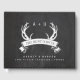 Diese Landschaft Hardcover Hochzeitsgast-Buch mit rustikalem Vintagen antler Bannerdesign mit dem Text THE HUNT IS OVER auf einem Chalkboard Hintergrund und wird vollständig an Ihren Namen, Hochzeitstag / Ort und sogar eine persönliche Nachricht oder Zitat auf der Rückseite angepasst werden. Ideal für Ihre rustikale / Land / Scheune / Wald / Jagdtheater Hochzeit.
