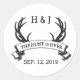 Rustikales Landschafts-Hirschgeweih "Die Jagd ist vorbei" Spaß-Grafik für Ihre Gastgeschenke Hochzeiten Aufkleber. Bitte personalisieren Sie es mit Ihrer eigenen Textgelegenheit - oder klicken Sie auf die Schaltfläche "Anpassen", um zum Designwerkzeug zu gelangen, wo Sie Hintergrundfarbe hinzufügen, Text hinzufügen, Schriftart, Textgröße, Textfarbe, Textpositionierung und vieles mehr ändern können.