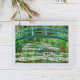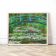 Das Bild zeigt einen helltürkisfarbenen Steg, der über einen Teich mit großen Gräsern ragt und von blutrosa und buttergelben Wasserlilien umgeben ist. Die Szene ist locker mit Touchs von lebhaften Farben bemalt. Im oberen Drittel der Komposition, die flach gewölbte Brücke fast Touch der obersten Kante der Leinwand, und es erstreckt sich von jeder Seite. Die Schatten auf der Brücke sind lila mit Auberginen bemalt. Dutzende von Wasserlilien zacken sanft in den Abstand auf der Wasseroberfläche. Der Frühling und die smaragdgrünen Gräser, die entlang der Ufer wachsen, füllen den Raum rund und über den Teich und sie vermischen sich zu einem Schirm von Bäumen jenseits dieser Umgebung. Das Grün der Gräser und Bäume spiegelt sich in der Oberfläche des Wassers wider, ebenso wie die Unterseite der Brücke. Wenn Sie eine Claude Monet Geschenkidee für diesen Fan von Monet suchen oder besondere Kunstgeschenke-Ideen für einen künstlerischen Freund auf Ihrer Liste benötigen, dann gibt es hier eine kreative Auswahl zum Nachdenken.