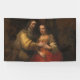 Dieses Design zeigt ein Gemälde des niederländischen Malers Rembrandt Harmenszoon van Rijn aus dem 17. Jahrhundert (1606-1669), der in der Regel als einer der bedeutendsten Künstler in der gesamten Geschichte der Western-Kunst gilt. Das Gemälde soll einem jüdischen Vater zeigen, der an ihrem Hochzeitstag eine Halskette an seiner Tochter schenken soll, obwohl diese Interpretation bestritten. Es könnte einem Mann zeigen, der seiner Ehefrau ein Geschenk macht. Auf jeden Fall zeigt es ein paar, die eine Liebe ausdrücken. Es hätte tatsächlich dazu gedacht sein können, Figuren aus dem Alten Testament zu repräsentieren. Laut Christopher White, der eine Biografie von Rembrandt schrieb, ist das Werk "einer der beststen Ausdrücke der zarten Verschmelzung von spiritueller und physischer Liebe in der Geschichte der Malerei." Das Originalwerk befindet sich derzeit in der permanenten Sammlung des Rijksmuseums Amsterdam.