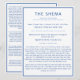 In diesen Karten sind die Worte des Shema enthalten, eines Gebets, das die jüdische tägliche Glaubenserklärung ist. Es enthält Auszüge aus der Tora, einschließlich der Deuteronomie 6:4-9, Deuteronomie 11:13-21 und Nummern 15:37-41. Es ist in Hebräisch und Englisch geschrieben. Mit dunkelblauem Text auf weißem Hintergrund gestaltet, um das Lesen zu erleichtern. Sie können den gesamten Text nach Bedarf bearbeiten. Weitere nützliche jüdische religiöse Vorräte finden Sie in meinem Geschäft: Zazzle.com/Shayna_Punim ✡ Für benutzerdefinierte Bestellungen, schreiben Sie mir auf Zazzle