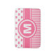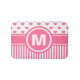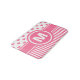 Personifizieren Sie diese schöne Badmatte, indem Sie das vorhandene Monogramm für Ihre Selbst austauschen! Die Ausrüstungsbeschreibungen ein rosa Herzmuster auf dem Spitzen- und horizontalen Streifenmuster auf der Unterseite.