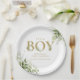 Es handelt sich um eine junge Babyduschpapiertafel mit eleganter Goldtypografie und hübschem botanischem Grün. Entwickelt von Thisisnotme©