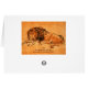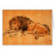 Ein ausgestorbener Berberlihn, der Ende der 1640er Jahre kauert, ruht und neu erarbeitet wurde von dem niederländischen Maler Rembrandt Van Rijn.Klassisches Monogramm-Design auf schwarzem Hintergrund, Stift und Tinte zeichnend in lebhaften orangefarbenen, schwarzen Farben mit alten braunen Pergamenteffekten.