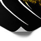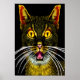 Eine niedliche und bezaubernde Katze mit Gelbauge und dunklem Fell, die Angst vor etwas hat, auf schwarzem Hintergrund. Das ist eine künstlerische KI.
