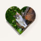 Eine Katze sitzt im grünen Garten neben einem Baumstamm und blickt nach vorn - zwei verschiedene Seiten
