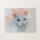 Eine weiße Angora Katze mit zwei gleichen Gewändern in Aquarell
