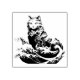 Elegante blau-weiße Katze im Stil von "The Wave Off Kanagawa" vom japanischen Holzblock ukiyo-e Künstler Hokusai, besonders für Katzenliebhaber.