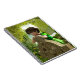 Eine süße Fee, in grünem Leans in Kontemplation auf einem alten keltischen Kreuz gekleidet, umgeben von Frühlingsdärgern und Kleeblättern in diesem originalen digitalen Kunstwerk, das in DAZ 3D von Jayne Wilson entworfen wurde.