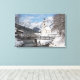 Die Kirche im Schnee mit den Alpen im Winter Leinwanddruck