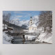 Die Kirche im Schnee mit den Alpen im Winter Poster