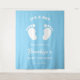 Eine blaue und weiße Babydusche, die die Mutter ehrt zu sein. Der Text des Babyfußdesigns ist anpassbar. Sie können den Schriftart, die Farbe des Schriftartes, die Größe des Schriftartes, den Abstand der Buchstaben, den Zeilenabstand ändern und den Text mithilfe des Entwurfstools neu positionieren.