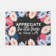 "Wertschätzen Sie die kleinen Dinge in Ihrem Leben" zitiert mit einem dunklen Blume Muster. Positive Vibes Zitate für ein schönes Geschenk.