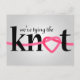 Stellen Sie sicher, dass Sie Freunde und Familie SAVE THE DATE mit einem hübschen rosa Herz Liebe Knoten für das "O" im Text KNOT. Individuell anpassbare TYING THE KNOT Postkarten für Ihren besonderen Tag.