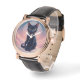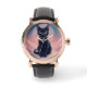 Uhr, Klassische Damenuhr mit schwarzen Lederarmband