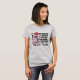 Der Nurse Design T - Shirt beinhaltet Objekte mit farbigen Krawatte, darunter eine Krankenschwester-Kappe, Kadukus, Stethoskop, hypodermische Nadel, Verband, Kaffeetasse und schwarzen Text, der lautet: "Sie glaubte, sie könne die Welt verändern, sodass sie zur Krankenschwester wurde!"