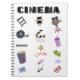 Doodles von Dingen im Zusammenhang mit dem Kinouniversum. Popcorn, Ticket, Drink, 3D-Brille, Camcorder, Film, Stars und vieles mehr