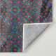Ein lebendiges, symmetrisches Farbmuster mit einer vielschichtigen Farbpalette, einschließlich tiefer Blues, hellen Purples und lebhaften Grüntönen, erzeugt einen kaleidoskopischen Effekt. Das Design ist dicht gepackt und bildet ein faszinierendes und sich wiederholendes geometrisches Motiv.