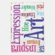 Vervollkommnen Sie für den Künstler oder der Kunststudent, die Eigenschaftswörter dieser Wortwolke, die auf Kunst bezogen werden, Kreativität und Inspiration. Kunst, Ausdruck, Form, Medien, Inspiration, Farbe, Palette etc.