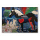 Diese Lithographie im Schwarzen, im Gelb und im Rot stellt Hunde, Pferde und Menschenzahlen in den Graffiti dar. Die Küste entlangfahrendes Pferdepolymer 1976 Roy De Forest A auf Leinwand-Oakland-Museum von Kalifornien am 9. September 2007 @juicyCiti