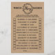 Würden sie lieber Brautparty Englisch und Spanisch Version Spiel enthalten (vorne und hinten). Ändern Sie Bride & Groom zu Namen in die Vorlage für Englisch und Spanisch. Für weitere Anpassungen (Fragen und andere Formulierungen ändern, Schriftart Farbe, Schriftart Stil ), klicken Sie auf Personalisieren, scrollen Sie nach unten und klicken Sie auf den Link "Klicken Sie auf, um weiter anzupassen". WIE MAN SPIELEN KANN: Die Gäste werden die Wahl, die sie für die Braut und den Bräutigam halten, Karo nehmen