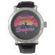 Uhr, Klassische Damenuhr mit schwarzen Lederarmband