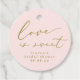 Ein Brautparty-Gunst-Tag, perfekt mit dem Satz "Liebe ist süß" in Imitaten Gold modernen kalligraphischen Schriftart auf einem rot-rosa Hintergrund. Personalisieren mit Namen und Duschdatum.