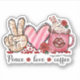Niedliche "Ruhe, Liebe, Kaffee", rosa und rote Herzen und Kaffeeaufkleber für den Valentinstag
