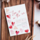 Die Einladung zur Valentine Bridal Dusche zeigt handgezeichnete Wasserfarbenherzen in Rot und Rosa. Das moderne Valentine-Thema ist perfekt für eine Liebe ist im Air Party. Auf der Rückseite können Sie Ihr eigenes Foto der schönen Braut hinzufügen. In diesem Design sind auch passende Gehäusekarten und Schilder erhältlich.