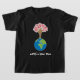 Eine originelle und symbolische Abbildung der Erde mit einem "Baum der Liebe", die eine offene Hand zeigt, die aus unserer Welt heranwächst, mit ausgestreckten Fingern und rot-rosa Herzen "Blätter in voller Blüte.