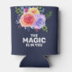 Kann Kühler mit dem inspirierenden Text: Die Magie ist in dir. Entworfen mit einem hübschen Bouquet von Aquarellfarben-Rose, die in einer farbenfrohen Blumenstruktur mit Ziern, Blätter und Ästen verwoben sind. Navy Hintergrund.