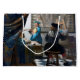 Johannes Vermeer (Oktober 1632 - Dezember 1675), im Original Niederländisch Jan Vermeer van Delft, war ein niederländischer Barockmaler, der sich auf innenpolitische Szenen des Mittelklassenlebens spezialisierte. Während seines Lebens war er ein moderat erfolgreicher provinzieller Genre Maler, der in Delft und Den Haag anerkannt wurde. Trotzdem produzierte er relativ wenige Gemälde und war offensichtlich nicht wohlhabend und verließ seine Ehefrau und Kinder bei seinem Tod in Schulden. Vermeer arbeitete langsam und mit großer Sorgfalt und benutzte häufig sehr teure Pigmente. Er ist besonders bekannt für seine meisterhafte Behandlung und den Einsatz von Licht in seiner Arbeit. "Fast alle seine Gemälde", schrieb Hans Koningsberger, "sind anscheinend in zwei kleinen Räumen in seinem Haus in Delft Set; sie zeigen die gleichen Möbel und Dekorationen in verschiedenen Arrangements und stellen oft dieselben Menschen dar, meistens Frauen." Seine bescheidene Berühmtheit machte nach seinem Tod Platz für Unklarheit. Er wurde kaum in Arnold Houbrakens größtem Quellbuch über die niederländische Malerei des 17. Jahrhunderts (Großtheater der niederländischen Maler und Frauen-Künstler) erwähnt und daher für fast zwei Jahrhunderte aus den nachfolgenden Untersuchungen niederländischer Kunst weggelassen. Im 19. Jahrhundert wurde Vermeer von Gustav Friedrich Waagen und Théophile Thoré-Bürger wiederentdeckt, der einen Essay veröffentlichte, der ihm 66 Bilder zuordnete, obwohl ihm heute nur 34 Gemälde allgemein zugeschrieben werden. Seit dieser Zeit ist Vermeers Ruf gewachsen, und er gilt heute als einer der beststen Maler des holländischen Goldenen Zeitalters. Zitat: Wikipedia
