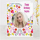 Foto Geburtstagskarte mit farbenfrohen mexikanischen Blume in Rosa, Rot, Gelb und Blau. Lade dein Foto in dieses lebendige und mädchenhafte Design, das innen und außen mit Blumenarrangements dekoriert ist. Die Vorderseite liest Happy Birthday [Ihr Name] in Western Typografie und Sie können auch jedes Alter hinzufügen (oder leer verlassen, wenn nicht erforderlich). Im Inneren kann die Nachricht wie verlassen, bearbeitet oder gelöscht werden. Eine schöne Wahl für Quinceanera, 16 . Geburtstag, Freundin oder Verwandte.