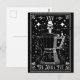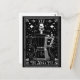 Grunge Tarot Kartendesign für Kaffeeliebhaber! Der Moka Pot. Weiße und schwarze Illustrationen mit einer Kaffeemaschine aus Moka, Kaffeebohnen und einem Schädel in einem oberen Hut.