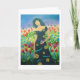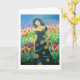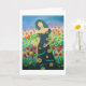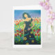 Eine Frau, die einen bunten Vogel hält, steht inmitten eines Meeres von Blume. Friedlich I, Alter