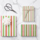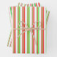 Diese festlichen, lustigen Weihnachtsdesigns sind mit rot, weiß und grün gestreiften Mustern inspiriert. Feiernde Packpapierblätter wie diese könnten Spaß machen, wenn man Geschenke vorbereitet, die anlässlich der Weihnachtsfeier gegeben werden.