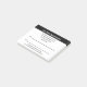In den Hinweisen steht oben "Ihr nächster Termin". Die Zeilen schwarzer Bildschirmtexte sind für den Namen der Arztpraxis, die Straßenadresse, die Telefonnummer und die Website verfügbar. Es gibt auch Zeilen für Datum und Uhrzeit der Bestellung. Im unteren Bereich befindet sich der Text, den Sie bearbeiten können, um eine benutzerdefinierte Nachricht zu zeigen. Alle Texte können bearbeitet oder gelöscht werden.