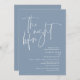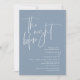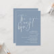 Die Nacht davor. Modernes, minimalistisches Design-Thema, Einladungskarte für das Hochzeitsessen der Probe (staubblau, Porträtausrichtung). Planen Sie ein Hochzeitsfest Probe Dinner mit der zu sein Braut und zu sein, vor ihrem großen Tag? Die Einladungs-Card für das Abendessen bei Hochzeit und Probe lädt zum Verweilen ein. Editieren Sie es einfach mit Ihren Probe Dinner Einladungsdetails. Die Einladungskarte ist sowohl in gedruckten als auch in herunterladbaren digitalen Kopien erhältlich.