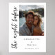 Fügen Sie Ihrem Probe-Dinner eine persönliche und elegante Touch mit diesem wunderschön gestalteten Begrüßungszeichen "the night before" hinzu. Dieses bearbeitbare Zeichen erlaubt es Ihnen, Ihr eigenes Foto als Hintergrund hochzuladen - es ist somit einzigartig. Dieses Template ist perfekt für die Begrüßung von Gästen auf Ihrer Veranstaltung geeignet. Aktualisieren Sie einfach die Namen, das Veranstaltungsdatum und das beliebte Foto nach Ihrem Stil. Laden Sie Ihr eigenes Foto als Hintergrund hoch und zeigen Sie es an. Machen Sie einen atemberaubenden ersten Eindruck mit einem Schild, das Ihre Liebe widerspiegelt und den Ton für Ihren besonderen Tag Set gibt.