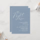 Mit unserer modernen ästhetischen ästhetischen staubblauen Motivdesign (The Night Before) Hochzeitsfeier-Einladungskarte geben Sie Ihr Glück immer wieder in stilvollem Stil bekannt. Es ist ideal für Paare, die sich entschieden haben, die Nacht vor ihrem großen Tag zu feiern. Mit seinem ausgeklügelten und spielerischen Design wird diese Einladung den Ton für ein unvergessliches Ereignis Set. Die Einladungskarte bietet modernes romantisches Drehbuchdesign und verleiht Ihrem Fest eine Touch zeitloser Eleganz. Designed by TeeshaDerrick