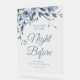 Die Nacht vor, Hochzeitszeichen, Probe-Zeichen, einfache Skript dusty blauen Aquarell Blumen Hochzeitsthema. Text und Farben können bearbeitet werden.