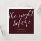 The Night Before Burgundy Red Calligraphy Wedding Probe Dinner Einladung, können alle Farben von Text und Hintergrund geändert werden, wenn Sie möchten.