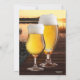 Die Nacht vor der Hochzeitsfeier Einladung mit einem Sonnenuntergang an einem See mit zwei Biergläsern an einem Steg. Auf der Rückseite können Sie wählen, ob Sie einen dunklen Holzhintergrund oder ein größeres Bild der Brille anzeigen möchten. Schön für eine GRILLEN im Freien oder ein Bierfest.