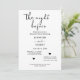 Das stilvolle Abendessen mit moderner Probe lädt zum Verweilen ein. Freuen Sie sich auf das elegante Design eines Schwarz-Kalligraphie-Script-Overlays. Personalisieren Sie die Vorderseite mit einem beliebten Foto der Braut und Bräutigam, sowie ein einfaches serifenloses Monogramm der Pärchennamen.