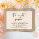 Feiern Sie die Liebe am Vorabend mit dieser klassisch-erdbraunen Hochzeitsdinner Probe Einladungskarte (am Vorabend). Es wurde mit eleganten, skallopierten Details und moderner Typografie gestaltet und vereint Einfachheit und Eleganz. Passen Sie mit Ihren Details auf, um eine sinnvolle Vorehelichung zu schaffen, die perfekt Ihren zeitlosen Hochzeitsstil ergänzt.