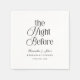 Verleihen Sie Ihrer Feier mit diesen modernen eleganten Probedinner-Servietten „The Night Before“ den letzten Schliff. Entworfen mit einer zeitlosen Schwarz-Weiß-Farbpalette und anspruchsvoller Typografie, verleihen diese maßgeschneiderten Servietten Ihrer Probedinner-Dekoration mit mühelosem Stil einen gehobenen Look.