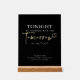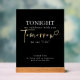 Minimalistisches romantisches Probe-Abendessen - "Heute Abend feiern wir, morgen sagen wir "Ich tue" Dieses elegante, minimalistische Schild erfasst wunderbar die Stimmung des Abends mit der herzlichen Botschaft: "Heute Abend feiern wir mit Ihnen, morgen sagen wir "Ich tue"."
